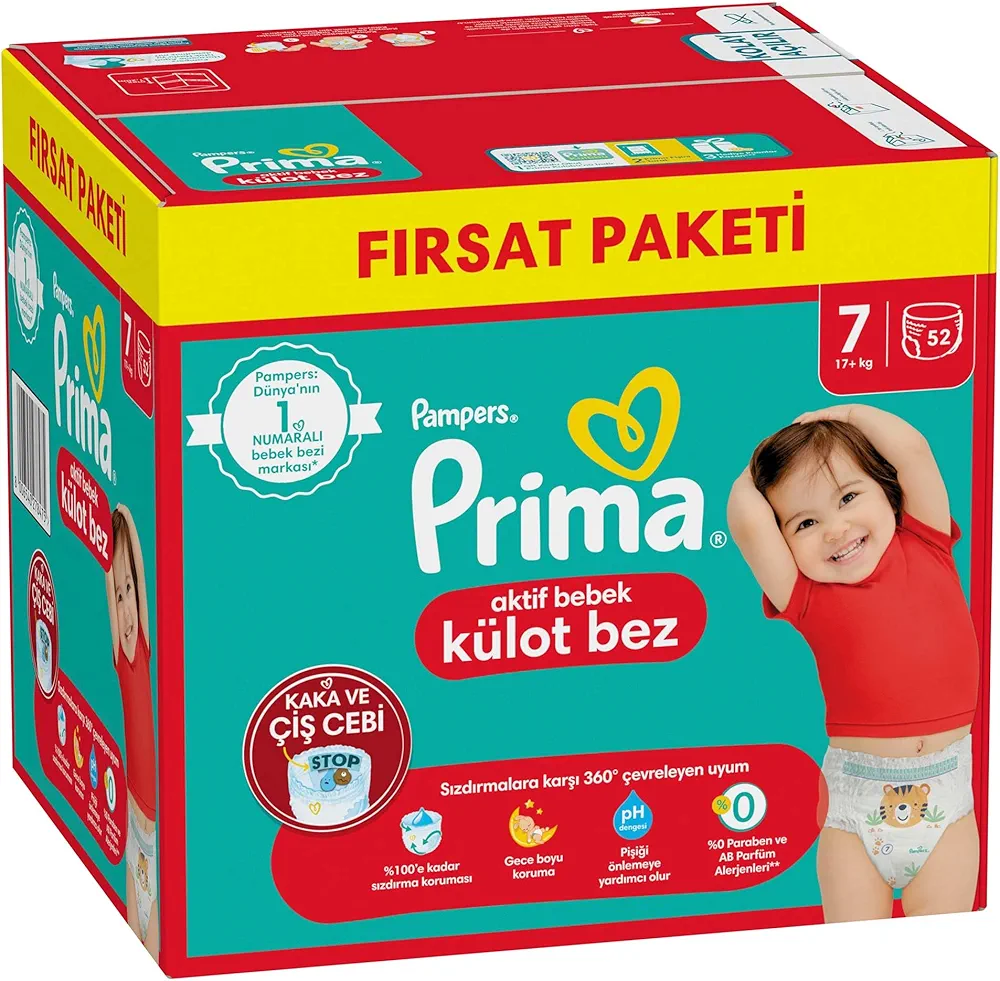پوشک پریما شورتی ضد حساسیت سایز 7 بسته 52 عددیناموجود